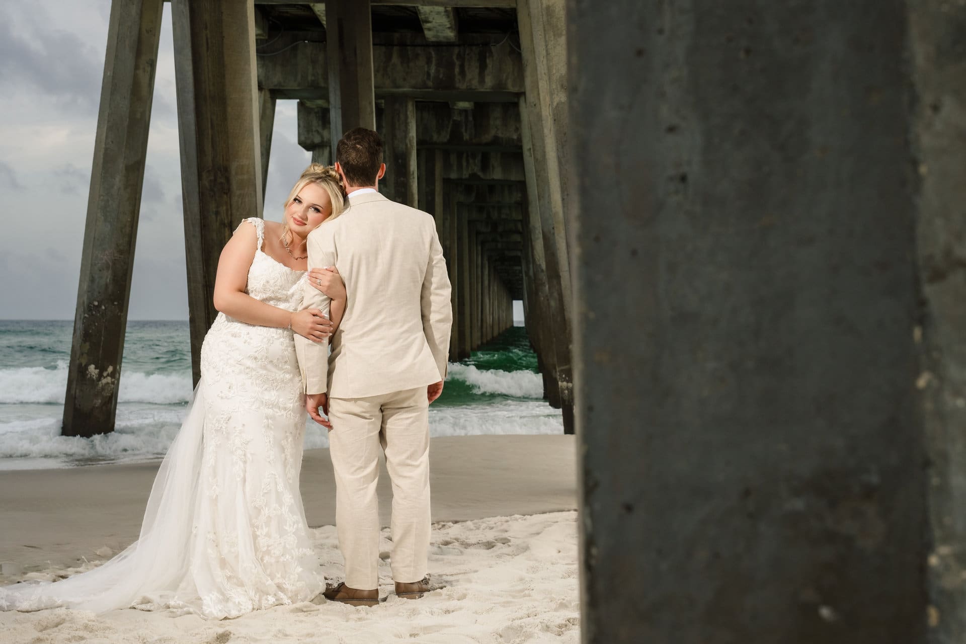 Pensacola Beach wedding photographer story from Shea and Javan’s Pier Suites celebration with relaxed portraits and coastal light.